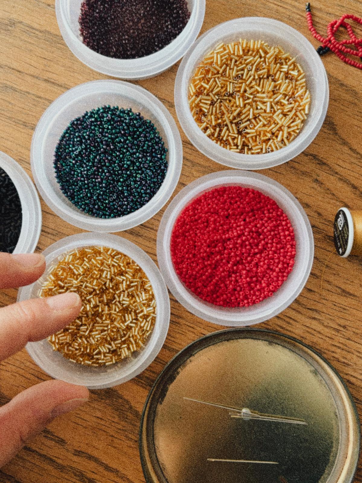 Kit base per la prima lezione incluso (perline, fili, aghi da ricamo)